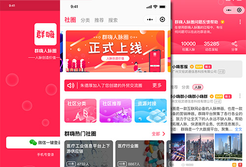 人脈創造價值---至力于微信端的社交、社圈平臺,為各行業提供一個資源整合交流平臺。